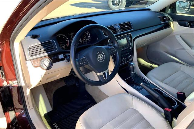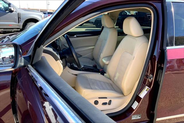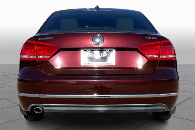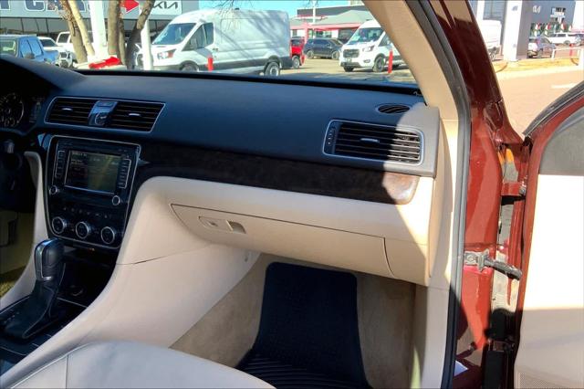TDI SEL Premium trim Opera Red Metallic exterior and Beige interior. EPA 40 MPG Hwy/30 MPG City! Heated Leather Seats NAV Sunroof Alloy Wheels Back-Up Camera. <br /><br />KEY FEATURES INCLUDE<br />Leather Seats Navigation Sunroof Heated Driver Seat Back-Up Camera <br /><br />WHY BUY FROM US<br />Buy with confidence at Group 1 where every used vehicle up to 175 000 miles comes with a one month 1 000-mile limited warranty along with a 3-day 250-mile return policy. Every vehicle is priced to market and includes a Carfax History Report. <br /><br />MARKET-BASED PRICING<br />You expect fair & competitive pricing. Thats why the price is based on current market data and is regularly compared to similar pre-owned vehicles in the region. <br /><br />QUALITY INSPECTIONS<br />Every vehicle is thoroughly inspected and comes with a complimentary vehicle history report. <br /><br />QUICK & TRANSPARENT FINANCING<br />Need Financing? Apply in minutes with all terms and conditions clearly disclosed upfront. <br /><br />VEHICLE SERVICE CONTRACTS<br />Avoid bumps in the road! Adding a service contract can help prevent future unexpected expenses from arising. Available for most purchases. <br /><br />EXPERTS REPORT<br />Edmunds.com explains Spaciousness is the operative word when describing the Passats cabin. In back the Passat verges on full-size sedan dimensions as even good-sized adults will have room to stretch out their legs.. <br /><br />OUR OFFERINGS<br />We have a strong and committed sales staff with many years of experience satisfying our customers needs. Feel free to browse our inventory online request more information about vehicles set up a test drive or inquire about financing! <br /><br />Fuel economy calculations based on original manufacturer data for trim engine configuration. Please confirm the accuracy of the included equipment by calling us prior to purchase. <br />