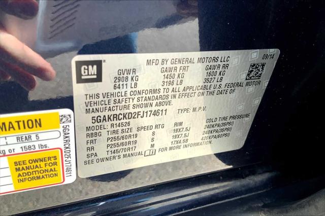 Premium trim. EPA 24 MPG Hwy/17 MPG City! Heated Seats 3rd Row Seat NAV Rear Air Quad Seats Alloy Wheels Power Liftgate AUDIO SYSTEM COLOR TOUCH NAVIGATION RADIO WITH INTELLILINK AUDIO SYSTEM COLOR TOUCH NAVIGATION.. <br /><br />KEY FEATURES INCLUDE<br />Third Row Seat Quad Bucket Seats Power Liftgate Rear Air Heated Driver Seat <br /><br />OPTION PACKAGES<br />ENGINE 3.6L VARIABLE VALVE TIMING V6 WITH SIDI (SPARK IGNITION DIRECT INJECTION) DOHC (288 hp [214.7 kW] @ 6300 rpm 270 lb-ft of torque [364.5 N-m] @ 3400 rpm) (STD) TRANSMISSION 6- SPEED AUTOMATIC ELECTRONICALLY CONTROLLED WITH OVERDRIVE (STD) AUDIO SYSTEM COLOR TOUCH NAVIGATION RADIO WITH INTELLILINK AM/FM/SiriusXM radio with CD player 6.5 diagonal touchscreen display includes Advanced Bose 10-speaker system USB port auxiliary input jack and rear audio controls with 2 headphone jacks (headphones not included). (STD). <br /><br />MARKET-BASED PRICING<br />You expect fair & competitive pricing. Thats why the price is based on current market data and is regularly compared to similar pre-owned vehicles in the region. <br /><br />QUALITY INSPECTIONS<br />Every vehicle is thoroughly inspected and comes with a complimentary vehicle history report. <br /><br />QUICK & TRANSPARENT FINANCING<br />Need Financing? Apply in minutes with all terms and conditions clearly disclosed upfront. <br /><br />VEHICLE SERVICE CONTRACTS<br />Avoid bumps in the road! Adding a service contract can help prevent future unexpected expenses from arising. Available for most purchases. <br /><br />EXPERTS ARE SAYING<br />Smooth and quiet ride; luxurious cabin; generous cargo capacity; seating for up to eight; top safety scores. -Edmunds.com. <br /><br />BUY WITH CONFIDENCE<br />CARFAX 1-Owner <br /><br />WHO WE ARE<br />We have a strong and committed sales staff with many years of experience satisfying our customers needs. Feel free to browse our inventory online request more information about vehicles set up a test drive or inquire about financing! <br /><br />Fuel economy calculations based on original manufacturer data for trim engine configuration. Please confirm the accuracy of the included equipment by calling us prior to purchase. <br />
