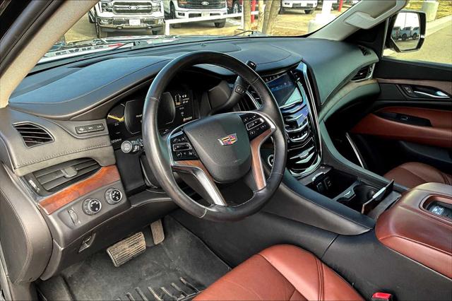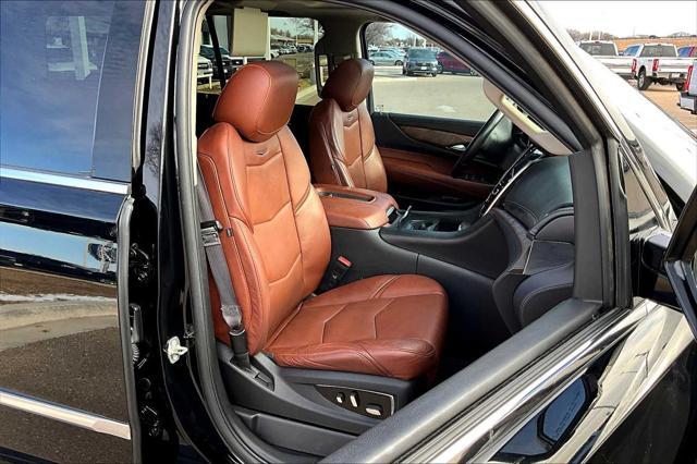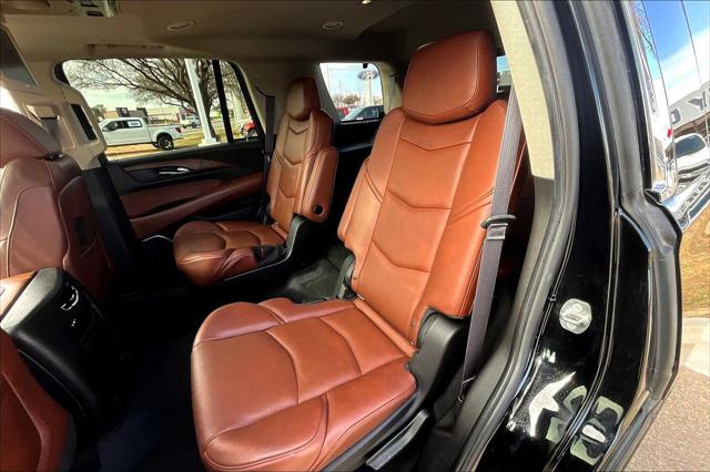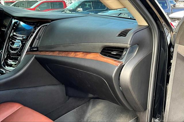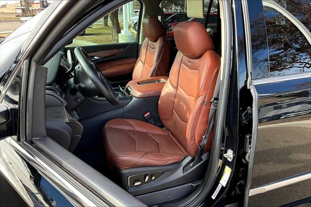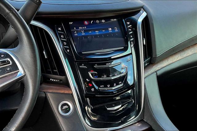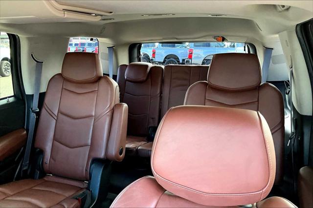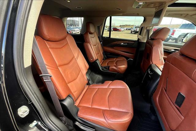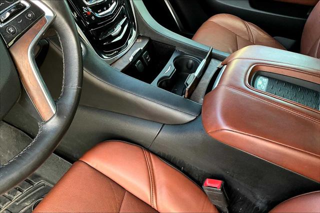 Premium trim. Third Row Seat Entertainment System Heated Leather Seats Nav System Moonroof 4x4 Quad Bucket Seats Hitch WHEELS 22 X 9 (55.9 CM X 22.9 CM) DUAL 7-SPOKE ULTRA-BRIGHT FINISH ALUMINUM WITH PREMIUM PAINT. <br /><br />KEY FEATURES INCLUDE<br />Leather Seats Third Row Seat DVD Sunroof 4x4 <br /><br />OPTION PACKAGES<br />ASSIST STEPS POWER-RETRACTABLE RUNNING SIDE BOARD WITH LED LIGHTING WHEELS 22 X 9 (55.9 CM X 22.9 CM) DUAL 7-SPOKE ULTRA-BRIGHT FINISH ALUMINUM WITH PREMIUM PAINT CADILLAC CUE INFORMATION AND MEDIA CONTROL SYSTEM WITH EMBEDDED NAVIGATION AM/FM stereo 8 diagonal color information display featuring touch response haptic feedback gesture recognition and Natural Voice Recognition. Five USB ports including one in the articulating storage door/bin SD card slot and auxiliary audio port (STD) ENGINE 6.2L V8 WITH ACTIVE FUEL MANAGEMENT Spark Ignition Direct Injection (SIDI) and Variable Valve Timing (VVT) includes aluminum block construction (420 hp [313.2 kW] @ 5600 rpm 460 lb-ft of torque [621 N-m] @ 4100 rpm) (STD) TRANSMISSION 8-SPEED AUTOMATIC 8L90 (STD). <br /><br />MARKET-BASED PRICING<br />You expect fair & competitive pricing. Thats why the price is based on current market data and is regularly compared to similar pre-owned vehicles in the region. <br /><br />QUALITY INSPECTIONS<br />Every vehicle is thoroughly inspected and comes with a complimentary vehicle history report. <br /><br />QUICK & TRANSPARENT FINANCING<br />Need Financing? Apply in minutes with all terms and conditions clearly disclosed upfront. <br /><br />VEHICLE SERVICE CONTRACTS<br />Avoid bumps in the road! Adding a service contract can help prevent future unexpected expenses from arising. Available for most purchases. <br /><br />WHY BUY FROM US<br />We have a strong and committed sales staff with many years of experience satisfying our customers needs. Feel free to browse our inventory online request more information about vehicles set up a test drive or inquire about financing! <br /><br />Please confirm the accuracy of the included equipment by calling us prior to purchase. <br />