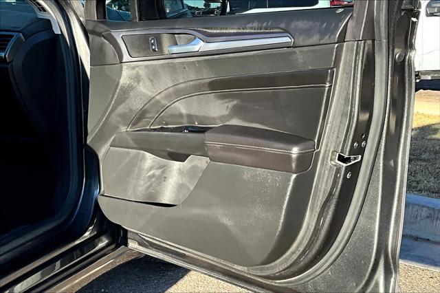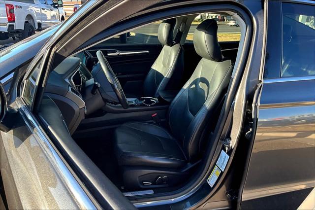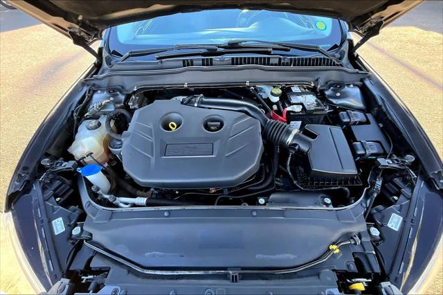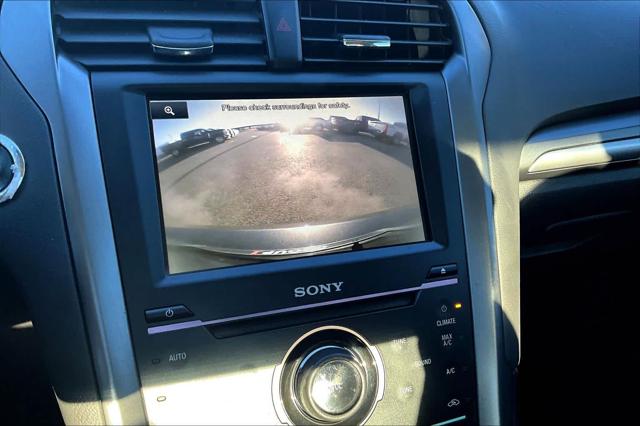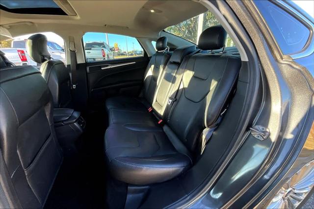 Titanium trim. FUEL EFFICIENT 33 MPG Hwy/22 MPG City! Heated Leather Seats Sunroof Satellite Radio Back-Up Camera Turbo Premium Sound System ENGINE: 2.0L ECOBOOST TRANSMISSION: 6 SPEED AUTOMATIC W/PAD... MOONROOF Alloy Wheels <br /><br />KEY FEATURES INCLUDE<br />Leather Seats Heated Driver Seat Back-Up Camera Premium Sound System Satellite Radio <br /><br />OPTION PACKAGES<br />MOONROOF Universal Garage Door Opener TRANSMISSION: 6 SPEED AUTOMATIC W/PADDLE SHIFTERS (STD) ENGINE: 2.0L ECOBOOST (STD). <br /><br />WHY BUY FROM US<br />Buy with confidence at Group 1 where every used vehicle up to 175 000 miles comes with a one month 1 000-mile limited warranty along with a 3-day 250-mile return policy. Every vehicle is priced to market and includes a Carfax History Report. <br /><br />MARKET-BASED PRICING<br />You expect fair & competitive pricing. Thats why the price is based on current market data and is regularly compared to similar pre-owned vehicles in the region. <br /><br />QUALITY INSPECTIONS<br />Every vehicle is thoroughly inspected and comes with a complimentary vehicle history report. <br /><br />QUICK & TRANSPARENT FINANCING<br />Need Financing? Apply in minutes with all terms and conditions clearly disclosed upfront. <br /><br />VEHICLE SERVICE CONTRACTS<br />Avoid bumps in the road! Adding a service contract can help prevent future unexpected expenses from arising. Available for most purchases. <br /><br />EXPERTS RAVE<br />Edmunds.com explains Theres a comfortable and assuring tautness to the way every Fusion rides and the standard electronic power steering accents the fine ride with accurate and nimble-feeling steering that isnt too darty or over-assisted.. <br /><br />WHO WE ARE<br />We have a strong and committed sales staff with many years of experience satisfying our customers needs. Feel free to browse our inventory online request more information about vehicles set up a test drive or inquire about financing! <br /><br />Fuel economy calculations based on original manufacturer data for trim engine configuration. Please confirm the accuracy of the included equipment by calling us prior to purchase. <br />