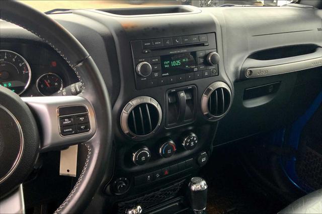 Ford Blue Certified LOW MILES - 42 679! Brake Actuated Limited Slip Differential Running Boards 4x4 Tow Hitch REMOTE START SYSTEM SIRIUS SATELLITE RADIO BLACK 3-PIECE HARD TOP ENGINE: 3.6L V6 24V VVT TRAILER TOW GROUP <br /><br />KEY FEATURES INCLUDE<br />4x4 Running Boards Brake Actuated Limited Slip Differential <br /><br />OPTION PACKAGES<br />QUICK ORDER PACKAGE 24F FREEDOM Engine: 3.6L V6 24V VVT Transmission: 5-Speed Automatic (W5A580) Mid Gloss Granite Crystal Appliques MOPAR Black Tail Lamp Guards Auto Dim Mirror w/Reading Lamp Front 1-Touch Down Power Windows Power Heated Mirrors Security Alarm Power Locks Remote Keyless Entry MOPAR Coat Hooks and Grab Handles Silver Interior Accents Vehicle Information Center Remote USB Port Uconnect Voice Command w/Bluetooth Leather Wrapped Steering Wheel Chrome/Leather Wrapped Shift Knob Tire Pressure Monitoring Display Iron Gray Interior Accents Body Color Fender Flares Low Gloss Black Wrangler Decal R1234YF A/C Refrigerant Freedom Package Decals Pantone Trail Rated Badge Mid Gloss Granite Crystal Grille Oscar Mike Badge Black/Chrome Screws Fuel Filler Door <br /><br />MARKET-BASED PRICING<br />You expect fair & competitive pricing. Thats why the price is based on current market data and is regularly compared to similar pre-owned vehicles in the region. <br /><br />QUALITY INSPECTIONS<br />Every vehicle is thoroughly inspected and comes with a complimentary vehicle history report. <br /><br />QUICK & TRANSPARENT FINANCING<br />Need Financing? Apply in minutes with all terms and conditions clearly disclosed upfront. <br /><br />VEHICLE SERVICE CONTRACTS<br />Avoid bumps in the road! Adding a service contract can help prevent future unexpected expenses from arising. Available for most purchases. <br /><br />OUR OFFERINGS<br />We have a strong and committed sales staff with many years of experience satisfying our customers needs. Feel free to browse our inventory online request more information about vehicles set up a test drive or inquire about financing! <br /><br />Please confirm the accuracy of the included equipment by calling us prior to purchase. <br />