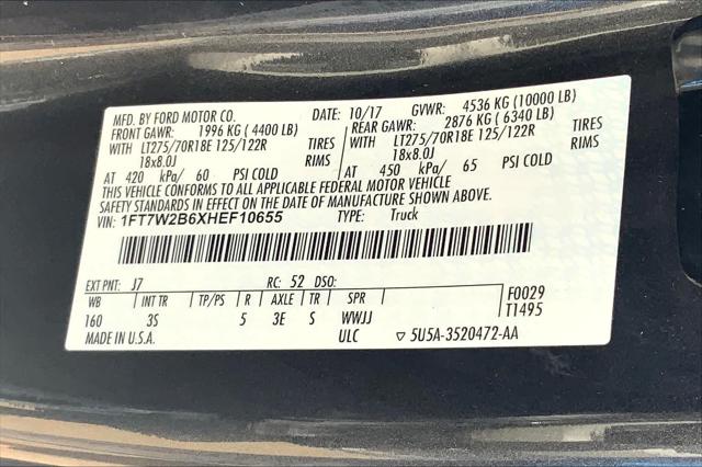 Ford Blue Certified. Heated Seats CD Player Satellite Radio Flex Fuel Back-Up Camera 4x4 ELECTRONIC-LOCKING W/3.73 AXLE RATIO TIRES: LT275/70RX18E OWL A/T (4) POWERSCOPE TRAILER TOW MIRRORS W/HEAT... XLT PREMIUM PACKAGE <br /><br />KEY FEATURES INCLUDE<br />4x4 Back-Up Camera Flex Fuel Satellite Radio CD Player <br /><br />OPTION PACKAGES<br />XLT PREMIUM PACKAGE 4.2 Center-Stack Screen Body-Color Door Handles w/Chrome Insert chrome tailgate handle Autolock/Auto Unlock 6 Angular Chrome Step Bars Adjustable Pedals SecuriCode Drivers Side Keyless Entry Keypad Reverse Sensing System Unique Chrome Mirror Caps Wheels: 18 Chrome PVD Aluminum Heated Driver & Passenger Seats SYNC 3 Communications & Entertainment System enhanced voice recognition 8 LCD capacitive touch screen in center stack w/swipe capability pinch-to-zoom capability included w/available voice-activated touchscreen navigation system AppLink 911 Assist Apple CarPlay and Android Auto and 2 smart charging USB ports NOTE: SYNC AppLink lets you control some of your favorite compatible mobile apps w/your voice It is compatible w/select smartphone <br /><br />MARKET-BASED PRICING<br />You expect fair & competitive pricing. Thats why the price is based on current market data and is regularly compared to similar pre-owned vehicles in the region. <br /><br />QUALITY INSPECTIONS<br />Every vehicle is thoroughly inspected and comes with a complimentary vehicle history report. <br /><br />QUICK & TRANSPARENT FINANCING<br />Need Financing? Apply in minutes with all terms and conditions clearly disclosed upfront. <br /><br />VEHICLE SERVICE CONTRACTS<br />Avoid bumps in the road! Adding a service contract can help prevent future unexpected expenses from arising. Available for most purchases. <br /><br />WHO WE ARE<br />We have a strong and committed sales staff with many years of experience satisfying our customers needs. Feel free to browse our inventory online request more information about vehicles set up a test drive or inquire about financing! <br /><br />Please confirm the accuracy of the included equipment by calling us prior to purchase. <br />
