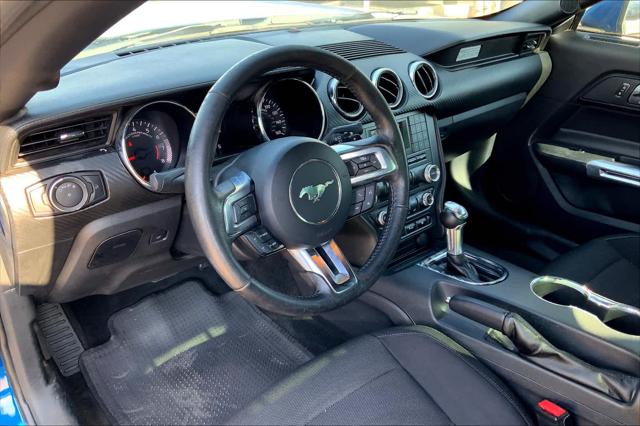 Ford Blue Certified. V6 trim Lightning Blue exterior and Ebony interior. Onboard Communications System CD Player iPod/MP3 Input Alloy Wheels SPARE WHEEL & TIRE TRANSMISSION: 6-SPEED SELECTSHIFT AUT... Back-Up Camera. <br /><br />KEY FEATURES INCLUDE<br />Back-Up Camera iPod/MP3 Input CD Player Onboard Communications System Aluminum Wheels <br /><br />OPTION PACKAGES<br />TRANSMISSION: 6-SPEED SELECTSHIFT AUTOMATIC steering wheel paddle shifters Leather-Wrapped Shift Knob Remote Start System SPARE WHEEL & TIRE. <br /><br />MARKET-BASED PRICING<br />You expect fair & competitive pricing. Thats why the price is based on current market data and is regularly compared to similar pre-owned vehicles in the region. <br /><br />QUALITY INSPECTIONS<br />Every vehicle is thoroughly inspected and comes with a complimentary vehicle history report. <br /><br />QUICK & TRANSPARENT FINANCING<br />Need Financing? Apply in minutes with all terms and conditions clearly disclosed upfront. <br /><br />VEHICLE SERVICE CONTRACTS<br />Avoid bumps in the road! Adding a service contract can help prevent future unexpected expenses from arising. Available for most purchases. <br /><br />EXPERTS ARE SAYING<br />Regardless of trim level the Mustangs interior materials are high-quality. Drivers of almost all sizes will easily find a suitable driving position <br /><br />SHOP WITH CONFIDENCE<br />Every Blue Certified used vehicle must pass a 139-point inspection Service available at any Ford Dealer in the 50 states and a manufacturer-backed 90-Day/4 000-Mile (whichever comes first) Comprehensive Limited Warranty and Complimentary 24/7 Roadside Assistance 11 000 FordPass Rewards Points to use towardscheduled maintenance visits or other rewards CARFAX Vehicle History Report included Complimentary SiriusXM 3-month trial <br /><br />MORE ABOUT US<br />We have a strong and committed sales staff with many years of experience satisfying our customers needs. Feel free to browse our inventory online request more information about vehicles set up a test drive or inquire about financing! <br /><br />Please confirm the accuracy of the included equipment by calling us prior to purchase. <br />
