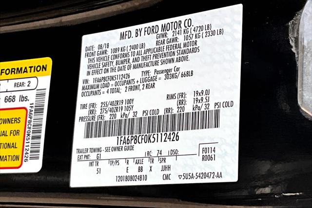 GT Premium trim. Ford Blue Certified LOW MILES - 49 369! Heated/Cooled Leather Seats Premium Sound System Back-Up Camera ENHANCED SECURITY PACKAGE EQUIPMENT GROUP 401A GT PERFORMANCE PACKAGE. <br /><br />KEY FEATURES INCLUDE<br />Leather Seats Heated Driver Seat Cooled Driver Seat Back-Up Camera Premium Sound System <br /><br />OPTION PACKAGES<br />GT PERFORMANCE PACKAGE Brembo 6-piston front brake calipers K-brace performance rear wing silver painted strut-tower brace unique chassis tuning unique electronic power assisted steering unique anti-lock brakes and upsized rear sway bar Engine Spun Aluminum Instrument Panel HD Front Springs 3.73 TORSEN Differential Ltd Slip Rear Axle Ratio Unique Stability Control Wheels: 19 x 9 Fr & 19 x 9.5 Rr Ebony Black Painted aluminum Larger Radiator Larger Brake Rotors Tires: 255/40R19 Fr & 275/40R19 Rr Summer-Only Designed to optimize driving dynamics and provide superior performance on wet and dry roads High performance summer tires wear faster than non-performance tires Ford does not recommend using summer tires when temperatures drop to approximately 45 deg F (7 deg C) or <br /><br />MARKET-BASED PRICING<br />You expect fair & competitive pricing. Thats why the price is based on current market data and is regularly compared to similar pre-owned vehicles in the region. <br /><br />QUALITY INSPECTIONS<br />Every vehicle is thoroughly inspected and comes with a complimentary vehicle history report. <br /><br />QUICK & TRANSPARENT FINANCING<br />Need Financing? Apply in minutes with all terms and conditions clearly disclosed upfront. <br /><br />VEHICLE SERVICE CONTRACTS<br />Avoid bumps in the road! Adding a service contract can help prevent future unexpected expenses from arising. Available for most purchases. <br /><br />VISIT US TODAY<br />We have a strong and committed sales staff with many years of experience satisfying our customers needs. Feel free to browse our inventory online request more information about vehicles set up a test drive or inquire about financing! <br /><br />Please confirm the accuracy of the included equipment by calling us prior to purchase. <br />