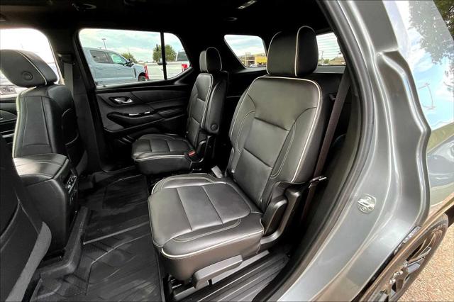 Ford Blue Certified. Premier trim. EPA 27 MPG Hwy/18 MPG City! Third Row Seat Heated Leather Seats Moonroof Nav System Rear Air Power Liftgate Hitch TRAILERING EQUIPMENT REDLINE EDITION LPO FLOOR LINER PACKAGE. <br /><br />KEY FEATURES INCLUDE<br />Leather Seats Third Row Seat Power Liftgate Rear Air Heated Driver Seat <br /><br />OPTION PACKAGES<br />REDLINE EDITION includes (SS8) 20 Gloss Black painted aluminum wheels with Red accents Gloss Black window surround (VUP) Redline accent decals Black mirror caps and door handles Black painted rocker and wheel openings with Black Ice inserts Black Ice grille surround and license plate applique (CG6) Black Traverse badges with Red outline (B94) Chevrolet Black Bowtie (V59) Black roof rails (C3U) Dual Skyscape 2-panel power sunroof and (V92) trailering equipment TRAILERING EQUIPMENT includes (V08) heavy-duty cooling system trailer hitch and (CTT) trailering assist guidelines (Includes (PZ8) Hitch Guidance with Hitch View. LPO FLOOR LINER PACKAGE includes (RIA) front and second row all-weather floor liner LPO (RIB) third row all-weather floor liner LPO and (CAV) integrated cargo liner LPO SUNROOF DUAL SKYSCAPE 2-PANEL POWER with tilt-sliding front and fixed rear includes power rear sunscreen AUDIO SYSTEM CHEVROLET INFOTAINMENT 3 PLUS SYSTEM with connected Navigation 8 diagonal HD color touchscreen AM/FM stereo Bluetooth audio streaming for 2 active devices Apple CarPlay and Android Auto capable enhanced voice recognition in-vehicle apps cloud connected personalization for select infotainment and vehicle settings. Subscription required for enhanced and connected services after trial period (STD) ENGINE 3.6L V6 SIDI VVT (310 hp [232.0 kW] @ 6800 rpm 266 lb-ft of torque [361 N-m] @ 2800 rpm) (STD) TRANSMISSION 9-SPEED AUTOMATIC (STD). <br /><br />MARKET-BASED PRICING<br />You expect fair & competitive pricing. Thats why the price is based on current market data and is regularly compared to similar pre-owned vehicles in the region. <br /><br />QUALITY INSPECTIONS<br />Every vehicle is thoroughly inspected and comes with a complimentary vehicle history report. <br /><br />QUICK & TRANSPARENT FINANCING<br />Need Financing? Apply in minutes with all terms and conditions clearly disclosed upfront. <br /><br />VEHICLE SERVICE CONTRACTS<br />Avoid bumps in the road! Adding a service contract can help prevent future unexpected expenses from arising. Available for most purchases. <br /><br />PURCHASE WITH CONFIDENCE<br />CARFAX 1-Owner Every Blue Certified used vehicle must pass a 139-point inspection Service available at any Ford Dealer in the 50 states and a manufacturer-backed 90-Day/4 000-Mile (whichever comes first) Comprehensive Limited Warranty and Complimentary 24/7 Roadside Assistance 11 000 FordPass Rewards Points to use towardscheduled maintenance visits or other rewards CARFAX Vehicle History Report included Complimentary SiriusXM 3-month trial <br /><br />MORE ABOUT US<br />We have a strong and committed sales staff with many years of experience satisfying our customers needs. Feel free to browse our inventory online request more information about vehicles set up a test drive or inquire about financing! <br /><br />Fuel economy calculations based on original manufacturer data for trim engine configuration. Please confirm the accuracy of the included equipment by calling us prior to purchase. <br />