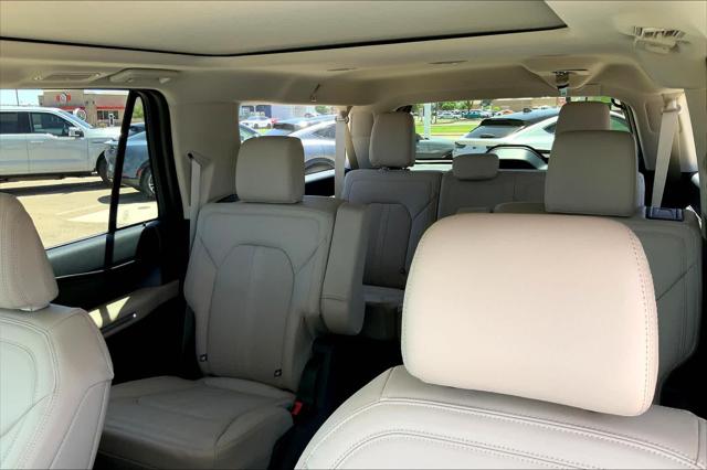 Navigation Moonroof Third Row Seat Heated Leather Seats Panoramic Roof Turbo Charged Captains Chairs Trailer Hitch TRANSMISSION: 10-SPEED AUTOMATIC W/SE... Limited trim Star White Metallic Tri-Coat exterior and Sandstone interior. <br /><br />KEY FEATURES INCLUDE<br />Leather Seats Third Row Seat Sunroof Panoramic Roof Quad Bucket Seats <br /><br />OPTION PACKAGES<br />EXCURSION PACKAGE Heavy-Duty Trailer Tow Package Integrated Trailer Brake Controller 26mm Engine Radiator Pro Trailer Backup Assist 360-Degree Camera w/Trailer Reverse Guidance Front Tow Hooks ControlTrac w/3.73 Axle Ratio eLSD (Electronic Limited-Slip Differential) 2-Speed Automatic 4WD neutral towing capability Advanced Cargo Manager black roof-rail crossbars Black Roof-Rail Crossbars Continuous Controlled Damping (CCD) suspension road preview 1st & 2nd Row Floor Liners w/Carpet Mats standard color-keyed carpet floor mats - front and second rows EQUIPMENT GROUP 302A HIGH PACKAGE Ebony Black Mesh Grille bright chrome bars and chrome inserts Power-Folding Sideview Mirrors w/Autofold power and heated glass turn signal indicators security approach lamps driver/passenger side memory drivers side auto-dimming and body-color caps Ford Co-Pilot360 Assist 2.0 Connected Navigation 1 year of connectivity pinch-to-zoom capability live traffic predictive destinations and route guidance Reverse Brake Assist 360-Degree Camera w/Split View front/rear washer Wheels: 22 12-Spoke Polished Aluminum Magnetic-Painted Power Deployable Running Boards polished stainless accent Heavy-Duty Independent Suspension Tires: P285/45R22 110H AS BSW TRANSMISSION: 10-SPEED AUTOMATIC W/SELECTSHIFT (STD). <br /><br />MORE ABOUT US<br />We have a strong and committed sales staff with many years of experience satisfying our customers needs. Feel free to browse our inventory online request more information about vehicles set up a test drive or inquire about financing! <br /><br />Please confirm the accuracy of the included equipment by calling us prior to purchase. <br />