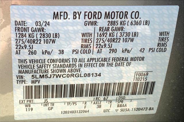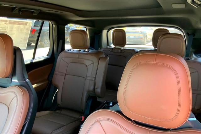 3rd Row Seat Heated Leather Seats Sunroof NAV LUXURY PACKAGE WHEELS: 22 BRIGHT-MACHINED ALUMINUM Quad Seats Turbo Panoramic Roof. Silver Radiance exterior and Ebony/Roast interior Reserve trim. EPA 26 MPG Hwy/18 MPG City! <br /><br />KEY FEATURES INCLUDE<br />Leather Seats Third Row Seat Navigation Sunroof Panoramic Roof <br /><br />OPTION PACKAGES<br />EQUIPMENT GROUP 201A Lincoln Co-Pilot360 1.5 Plus front/side/rear parking sensors Evasive Steering Assist Reverse Brake Assist Intelligent Adaptive Cruise Control lane centering assist stop-and-go and speed sign recognition Active Park Assist 2.0 Elements Package Plus Auto Air Refresh active air monitoring system Heated/Ventilated 2nd Row Outboard Seats Heated Steering Wheel Auto Heated/Ventilated Driver & Passenger Seats Heated VisioBlade Wipers Phone As A Key Note: Phone as a key is not compatible w/fleet vehicles equipped w/fleet telematics LUXURY PACKAGE Rear Door Sunshades 30-Way Perfect Position Seats w/Active Motion power thigh extender and head restraints Radio: Revel Ultima 3D Audio System w/28 Speakers subwoofer and QuantumLogic 3D Surround technology ILLUMINATION PACKAGE Adaptive Pixel LED Headlamps adaptive dynamic bending lighting Lincoln dynamic signature lighting - LED daytime running lamps (sequential fade on/off) and speed dependent lighting Illuminated Lincoln Star in Grille LED Fog Lamps WHEELS: 22 BRIGHT-MACHINED ALUMINUM magnetic painted pockets Tires: 275/40R22 107 W-Rated ALL-WEATHER 1ST & 2ND ROW FLOOR LINERS first and second row carpet floor mats TRANSMISSION: 10-SPEED AUTOMATIC W/SELECTSHIFT (STD). <br /><br />BUY FROM AN AWARD WINNING DEALER<br />We have a strong and committed sales staff with many years of experience satisfying our customers needs. Feel free to browse our inventory online request more information about vehicles set up a test drive or inquire about financing! <br /><br />Fuel economy calculations based on original manufacturer data for trim engine configuration. Please confirm the accuracy of the included equipment by calling us prior to purchase. <br />